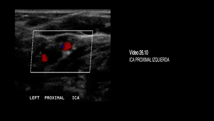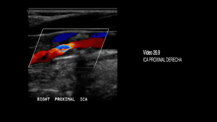 Video 26.09 Estenosis de alto grado en la ICA derecha proximal (Doppler color)
